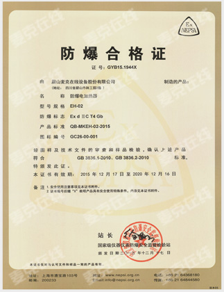 我公司于2015年12月24日正式取得由國家級儀器儀表防爆安全監督檢驗站頒發的防爆合格證,包括《防爆在線連續分析儀》防爆證、《溫壓流變送器》防爆證、《防爆電加熱器》防爆證。